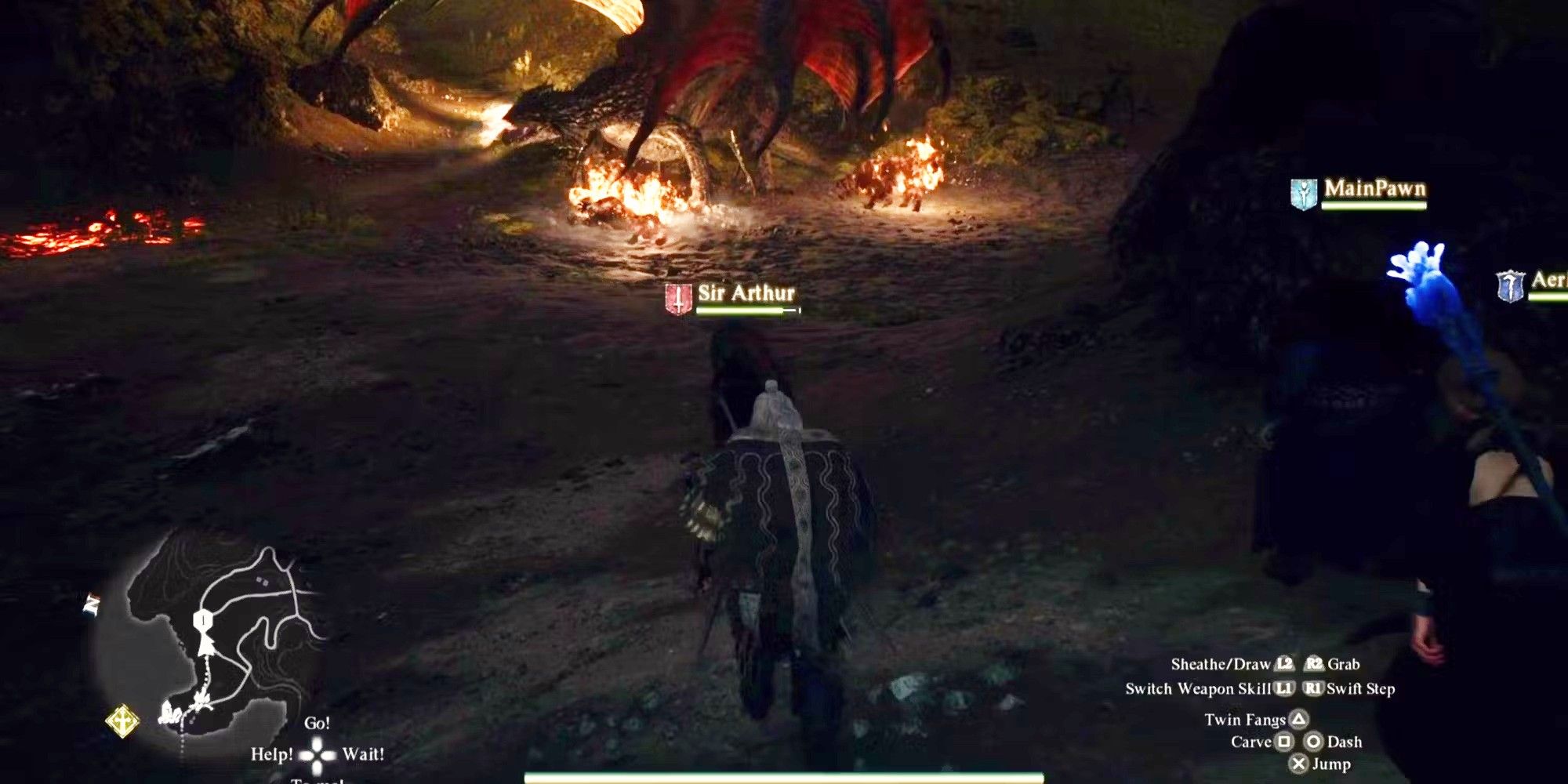 Al llegar aquí por primera vez, encontrarás un Drake luchando contra varios Wargs. Estos enemigos no tienen una barra de salud como el Drake, pero son bastante resistentes y pueden recibir muchos golpes antes de caer. Existe la posibilidad de que se centren en el Drake, dejándote lidiar con ambos por un poco de experiencia y materiales de mejora.