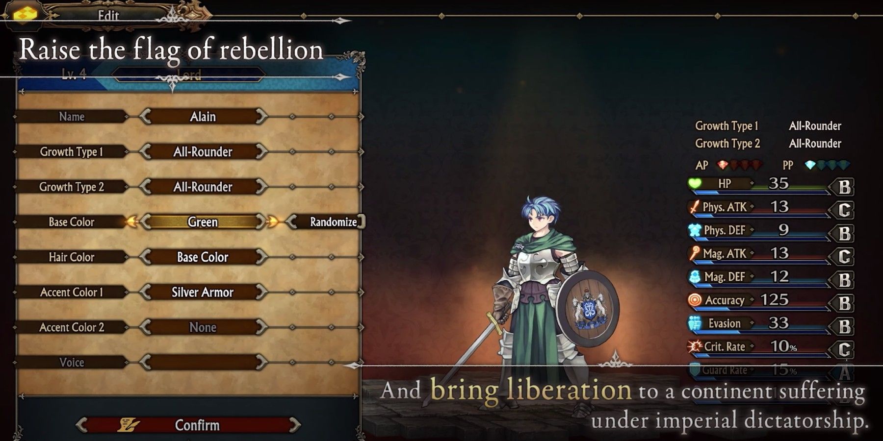 Pequeños cambios en la vestimenta, como la oportunidad de alterar los colores de acento de una contratación para hacer que destaquen más visualmente, funcionan bien en beneficio de la dirección artística de Vanillaware sin afectar las estadísticas. La oportunidad de ajustar los patrones de crecimiento de las contrataciones, sin embargo, puede tener una gran consideración en el combate de Unicorn Overlord, lo que hace que los personajes secundarios sean más útiles en la batalla. Los jugadores pueden seleccionar dos tipos de crecimiento para una contratación de mercenario, que se caracterizan por diferentes enfoques. Por ejemplo, el tipo de crecimiento "Afortunado" ayuda a aumentar la evasión, lo que funciona bien para personajes que podrían estar situados en la fila delantera de una formación de unidades. Otros, como el tipo de crecimiento "Agudo", ayudan a aumentar la Tasa de Crítico para derrotar rápidamente a los personajes, lo que puede funcionar bien para una clase de Caballero con alta movilidad.