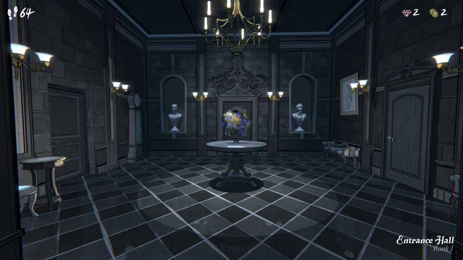 Cada "run" comienza en el Entrance Hall, donde debes elegir una de tres puertas. Lo que hay detrás depende de las habitaciones disponibles, que están clasificadas por colores según su tipo. Algunas salas te recuperan pasos, otras ofrecen objetos clave, y otras —como las temidas habitaciones rojas— te complican el camino con efectos negativos. Este diseño dinámico mantiene cada partida fresca y llena de tensión.