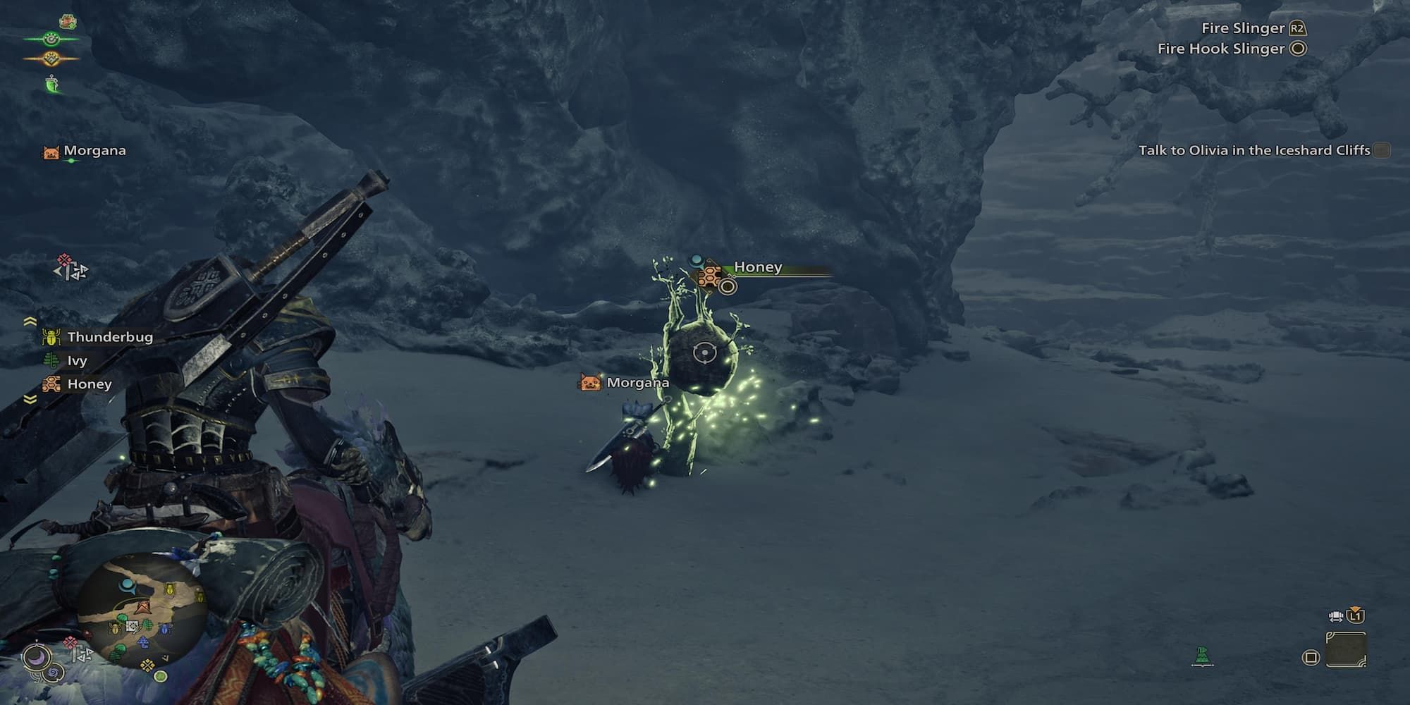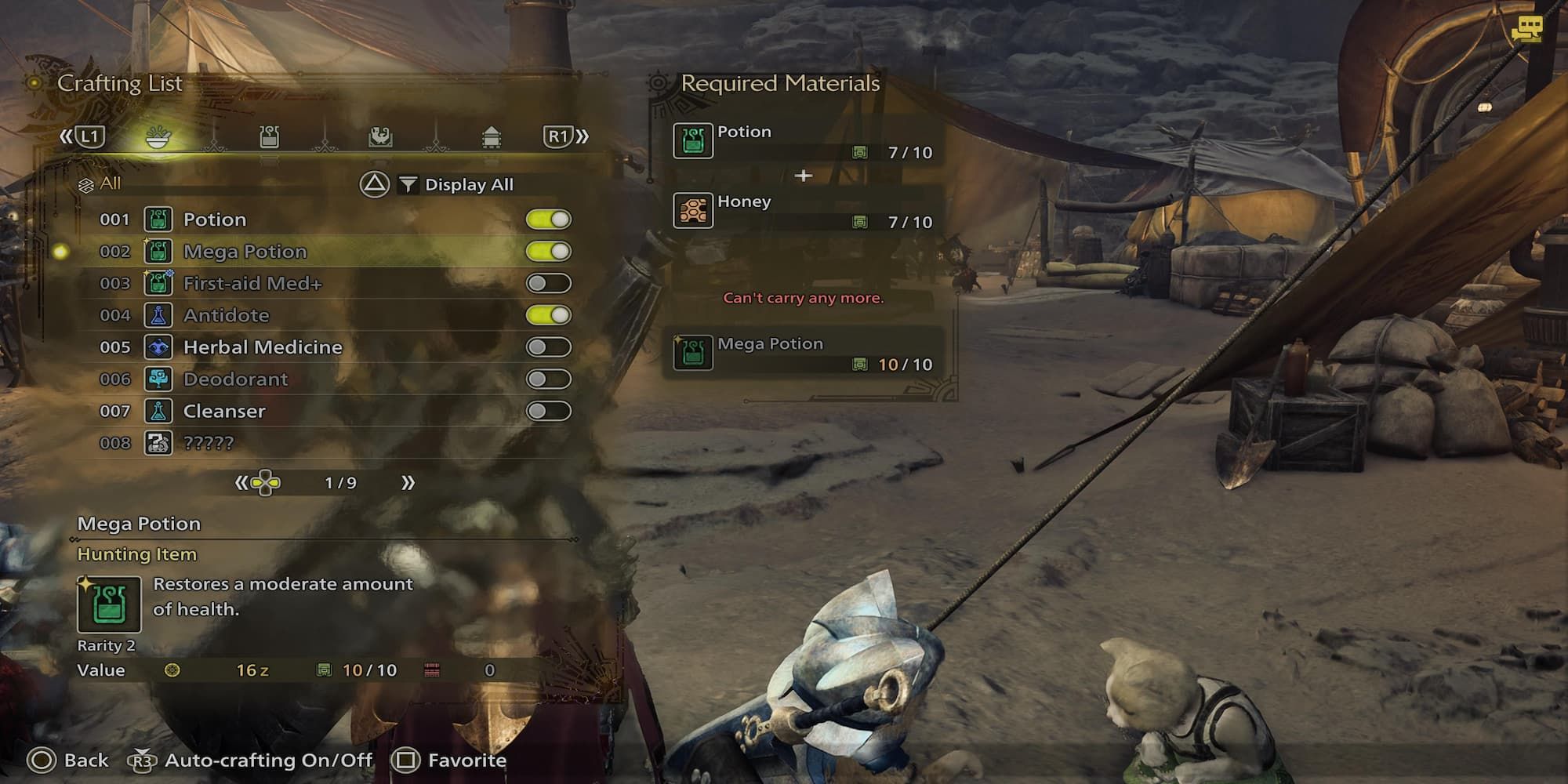 Si tu salud es baja, tu Palico puede correr a curarte de manera automática. También puedes interactuar con un Vigowasp para recibir curación instantánea, aunque estos tardan 15 minutos en reaparecer después de usarlos.