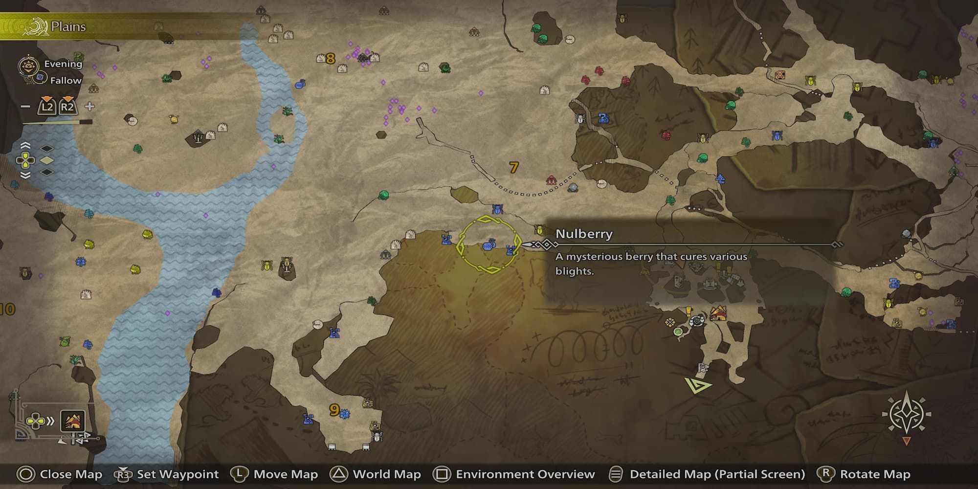 Los Nulberry son especialmente útiles ya que eliminan todas las Blights elementales. Se pueden encontrar en el mapa como semillas azules y son indispensables en cualquier cacería.