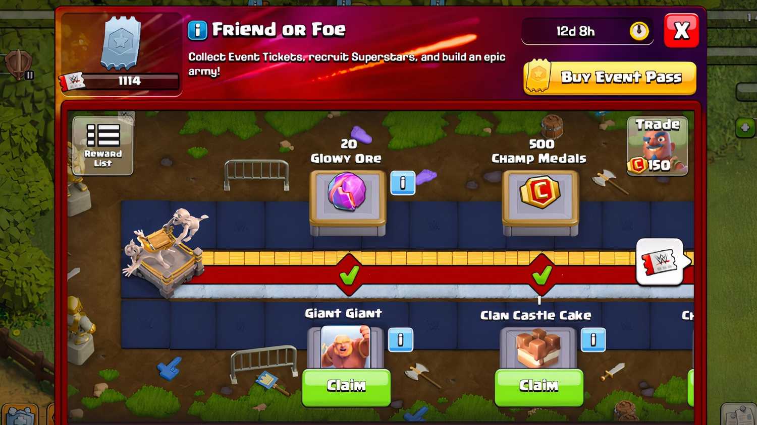 Del 8 al 29 de abril, Clash of Clans celebra el evento Friend or Foe, una colaboración con la WWE que introduce nuevas tropas temporales, héroes especiales y un sistema de recompensas basado en tu progreso individual. A diferencia de eventos como Gold Rush, aquí no dependes de tu clan: todo depende de ti.