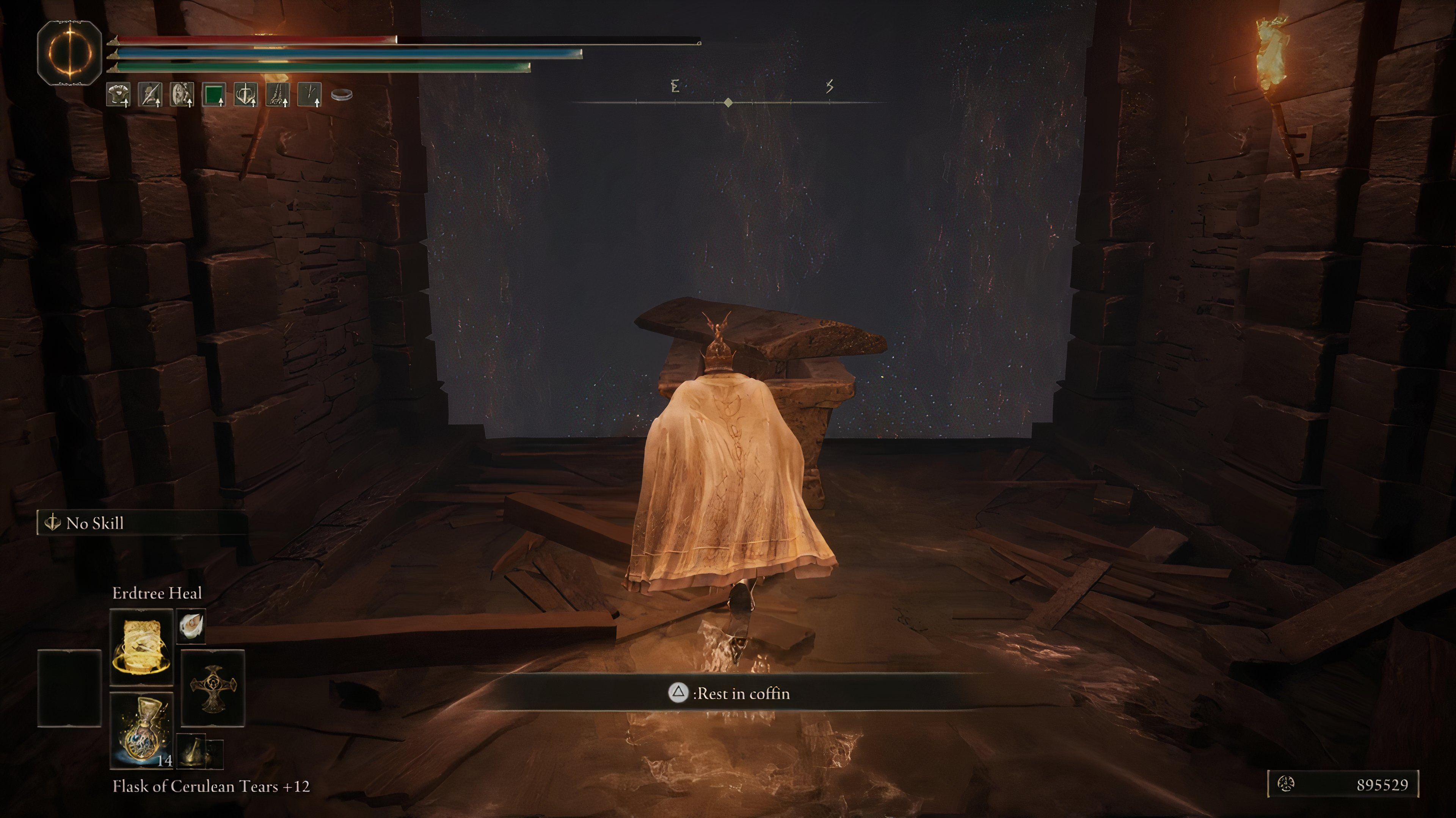 Desde el Sitio de Gracia Planta Baja del Almacén en Shadow Keep, da la vuelta y baja por el ascensor que usaste para llegar a este Gracia. Pasa junto al Caballero Rojo y gira a la izquierda, ignorando a los Milicianos de las Sombras. Debería haber una escalera a la izquierda que desciende hacia un pasillo estrecho. Pasa a través de la cascada y baja por la escalera para llegar a una habitación con un cuadro. Puedes rodar por la pared a la derecha para revelar un pasaje oculto. Avanza y interactúa con el ataúd para ser transportado.