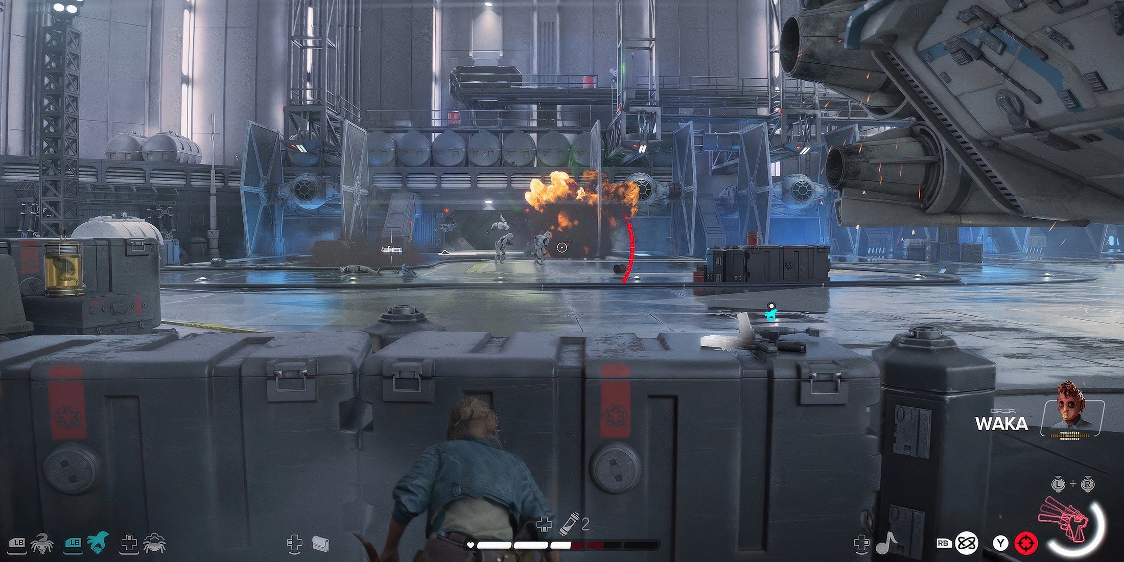 Un mundo que reacciona intuitivamente a tus acciones y te permite enfrentarte a tantos stormtroopers como puedas.