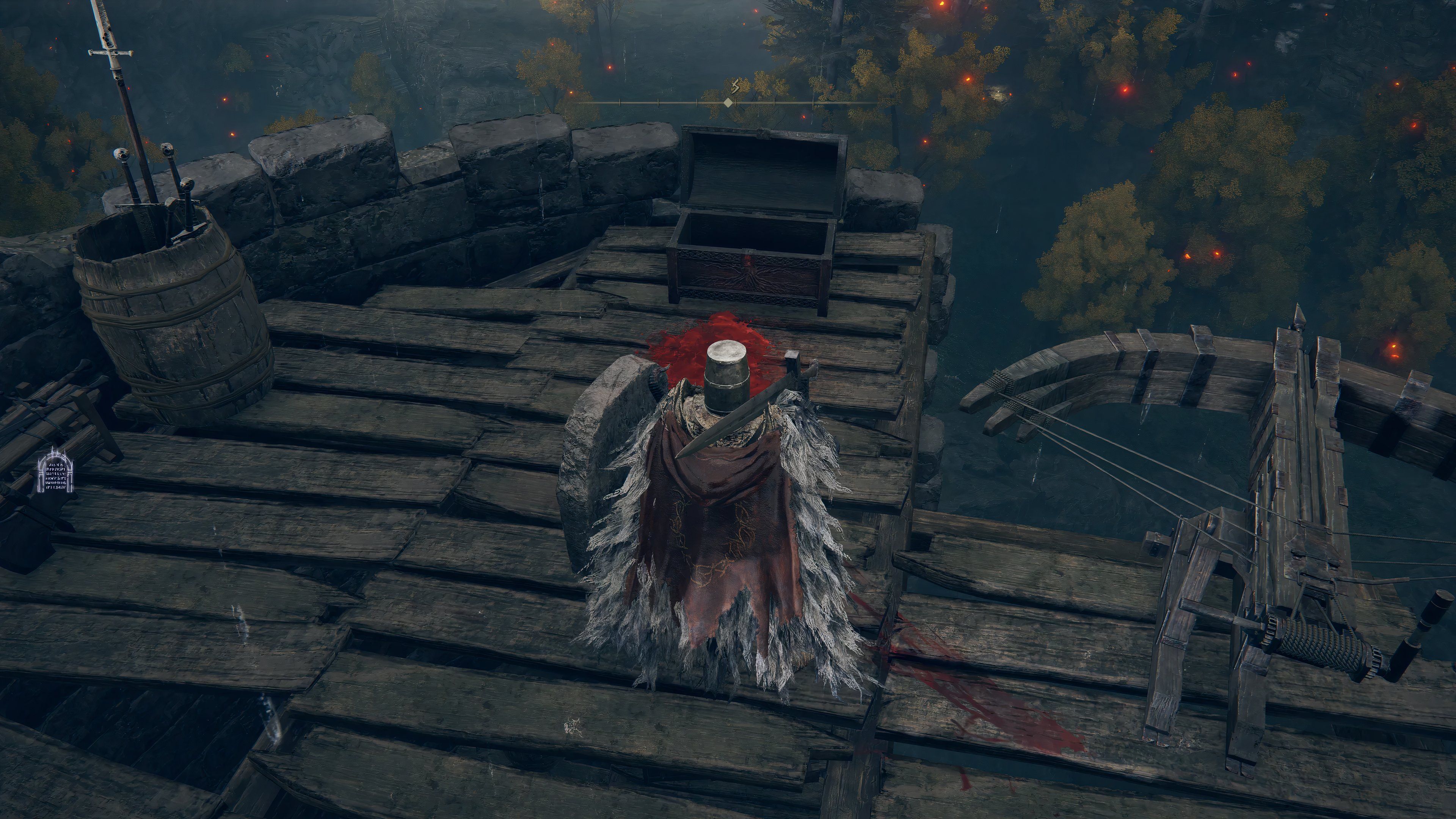 Posteriormente, los jugadores se encuentran en una ubicación predeterminada, generalmente alarmantemente lejos de donde estaban. El cofre trampa más notable es el que se encuentra en la Torre de Retorno en la Península Llorosa, que teletransporta a los jugadores a Leyndell, la Capital Real, en el otro extremo del mapa al norte.