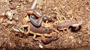 Los escorpiones realizan todo un ritual de cortejo que se asemeja a un baile, a veces conocido como promenade à deux (del francés, y significa “caminar para dos”). Los detalles varían según la especie, pero si la hembra muestra interés en el macho, por lo general comienzan enfrentándose y agarrándose a los pedófilos del otro, luego girando hacia adelante y hacia atrás junto con sus colas levantadas por encima de sus espaldas.