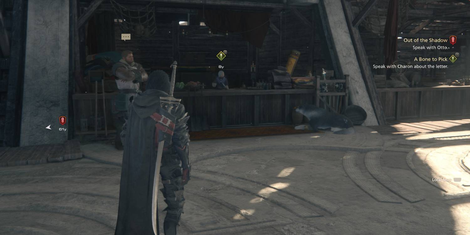 Clive se encuentra con Charon en Final Fantasy 16 Al aceptar la misión, Clive debe salir de sus cámaras e interactuar con Charon, quien se encuentra justo a la derecha de la entrada de The Black Hammer. Según ella, Torgal ha estado actuando de manera extraña últimamente. Pensando que su repentino cambio de comportamiento puede tener algo que ver con los poderes recién despertados del lobo, ella recomienda que Clive hable con Harpocrates.