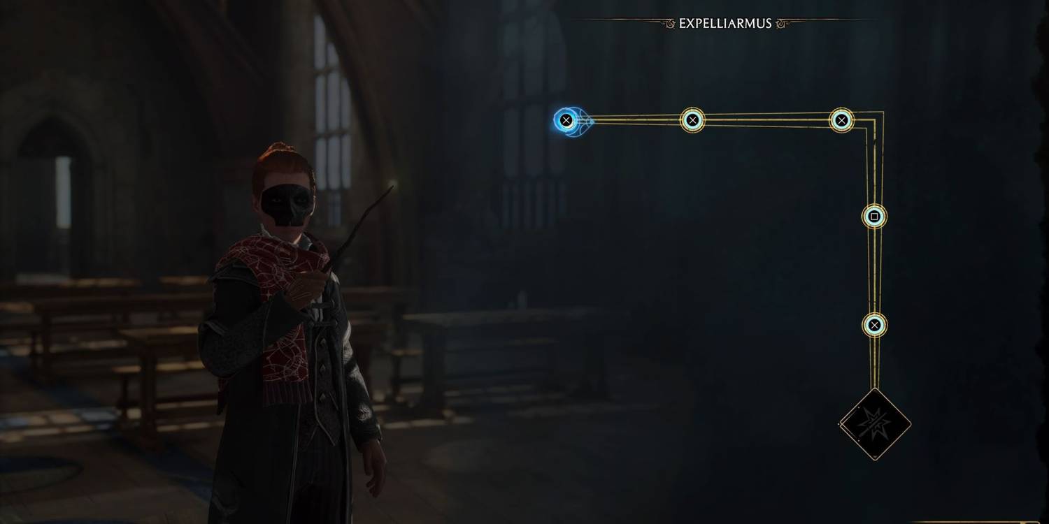 Aprender Expelliarmus Una vez que se completen estas tareas, asiste a la clase de Defensa Contra las Artes Oscuras y mira la escena corta. Una vez que termine, la profesora Hecat enseñará al jugador Expelliarmus. Sigue las indicaciones de los botones y apunta el cursor a lo largo del camino para completar el mini-juego y agregar permanentemente el hechizo al arsenal del jugador. Expelliarmus se puede equipar en cualquier ranura del conjunto de hechizos del jugador.