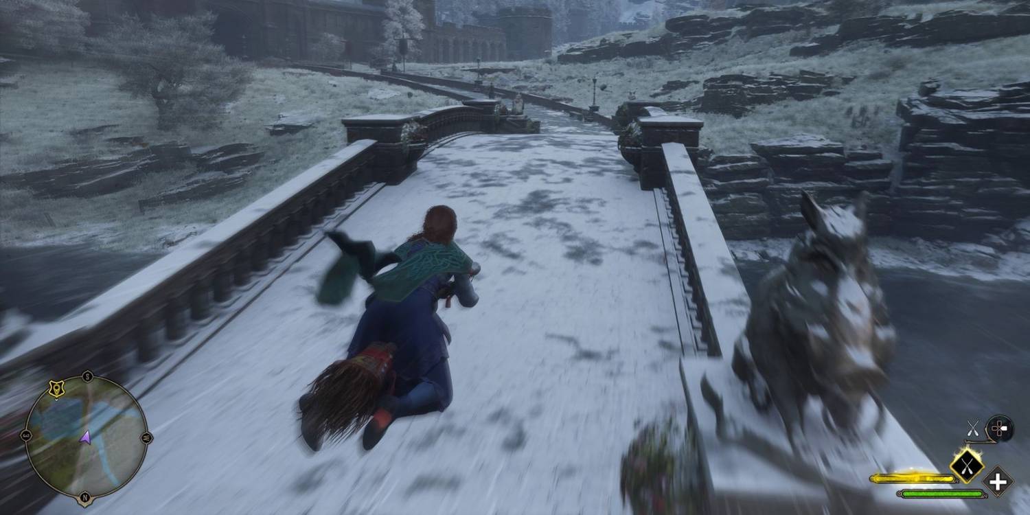 Esto quizás no sea tan escénico como volar por el aire junto a hipogrifos y búhos mientras se contempla el impresionante mundo abierto de Hogwarts Legacy, pero es ciertamente más rápido. Los jugadores incluso pueden alternar entre volar alto para disfrutar de las vistas y bajar cerca del suelo en cualquier momento en que su medidor de impulso se quede sin carga y necesite ser recargado.