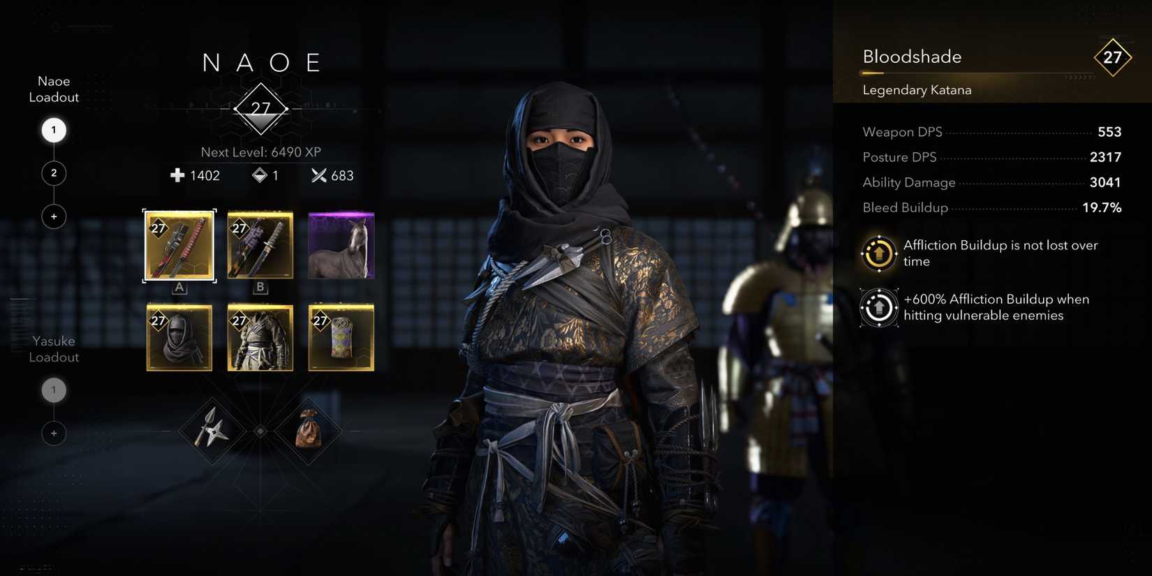 El trinket legendario Otakemaru’s Battlecry convierte los puntos del árbol Shinobi en regeneración de vida (1% por punto invertido). Como la mayoría de los jugadores desarrollan a Naoe en esa rama, esto añade una gran capacidad de resistencia en combate.
