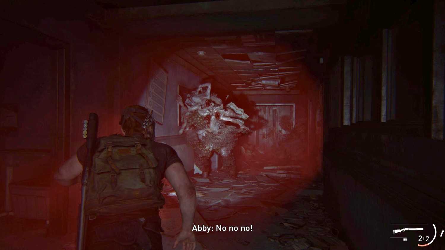 La pelea comienza con Abby atrapada dentro de una ambulancia, justo cuando el Rey Rata aparece. Este engendro monstruoso te obligará a correr por los pasillos del hospital mientras rompe paredes para interceptarte. No intentes enfrentarlo aún: esta fase es una secuencia de escape, donde el objetivo principal es sobrevivir.